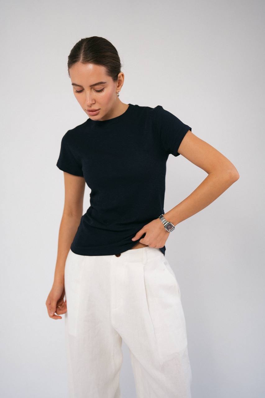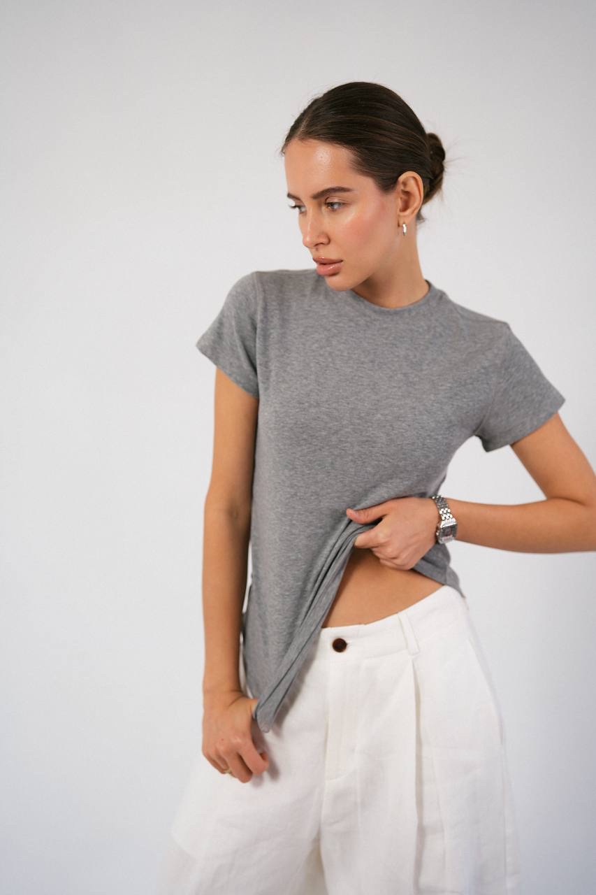 Базовая однотонная футболка в премиум качестве облегающего силуэта