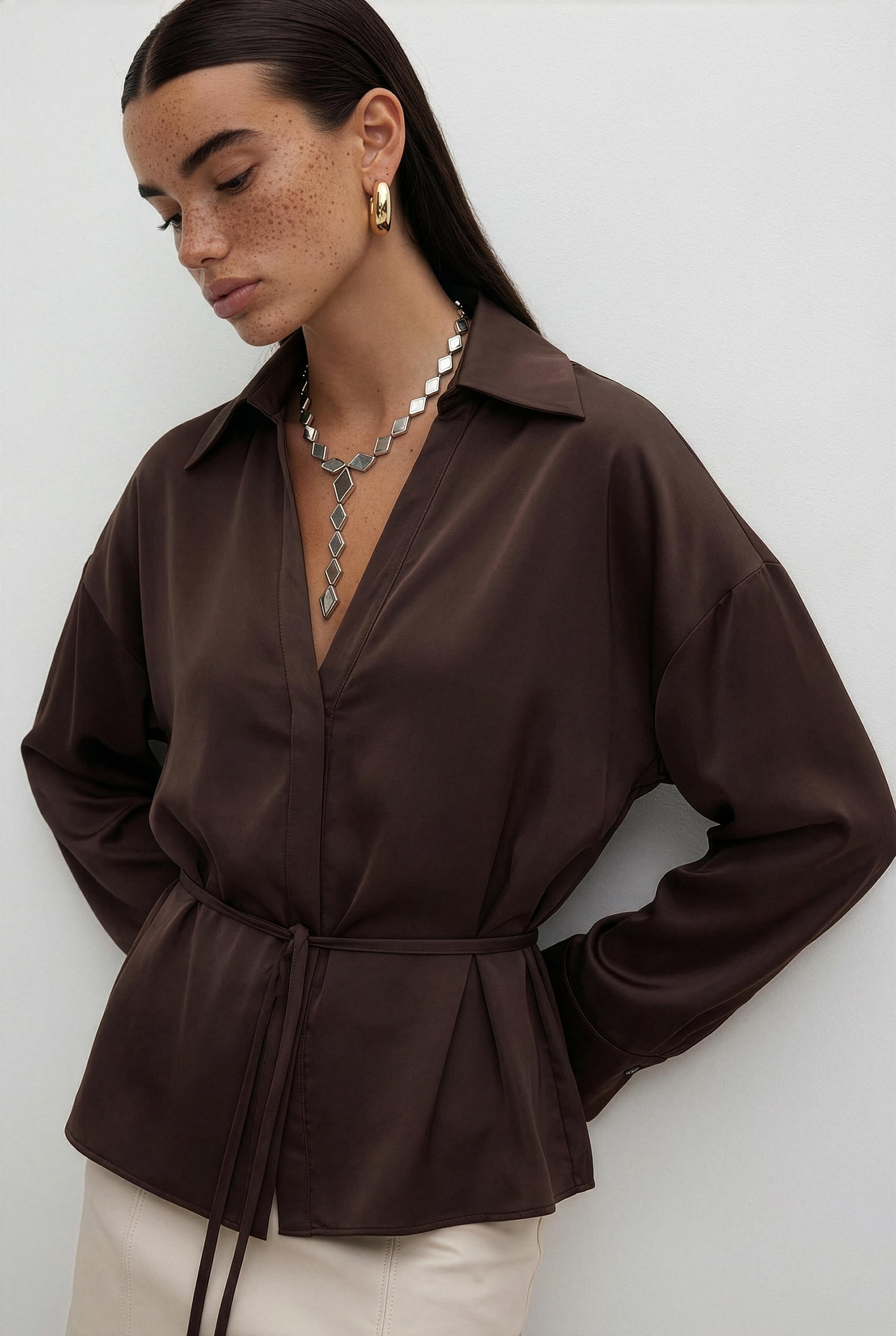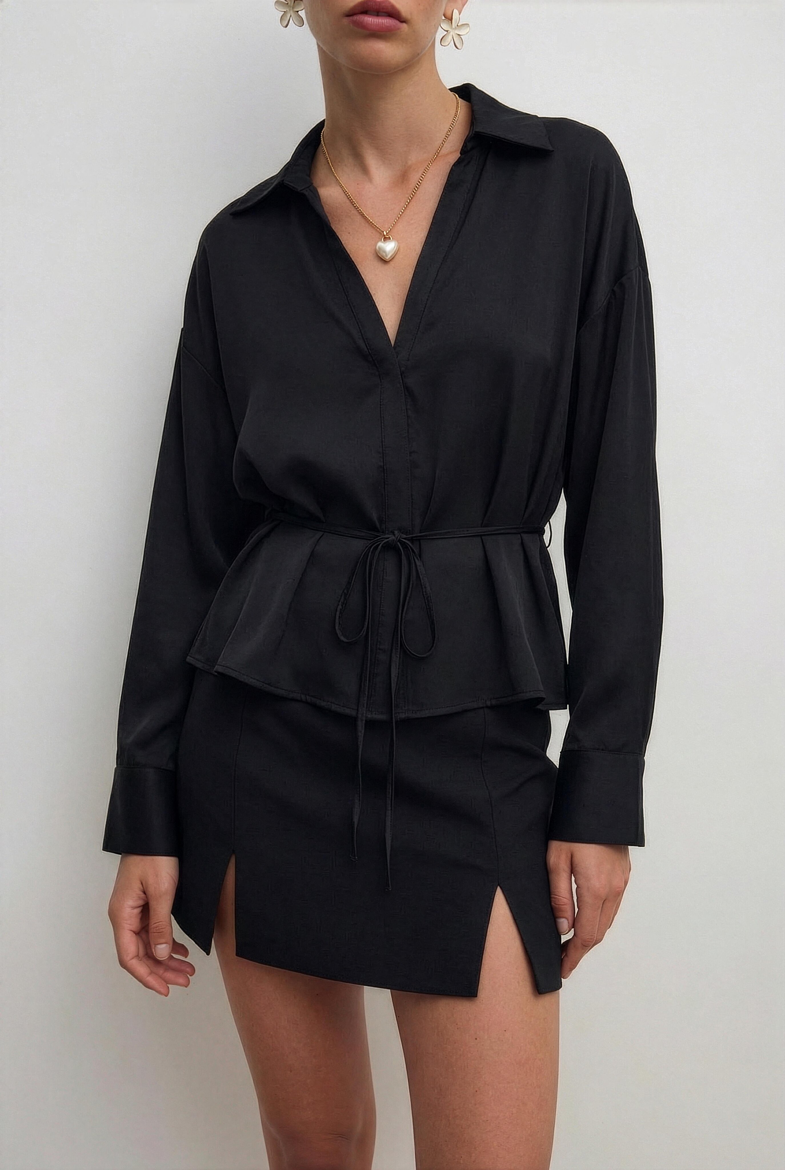 Блуза из струящейся ткани с акцентом на талии