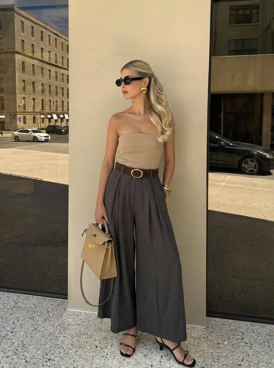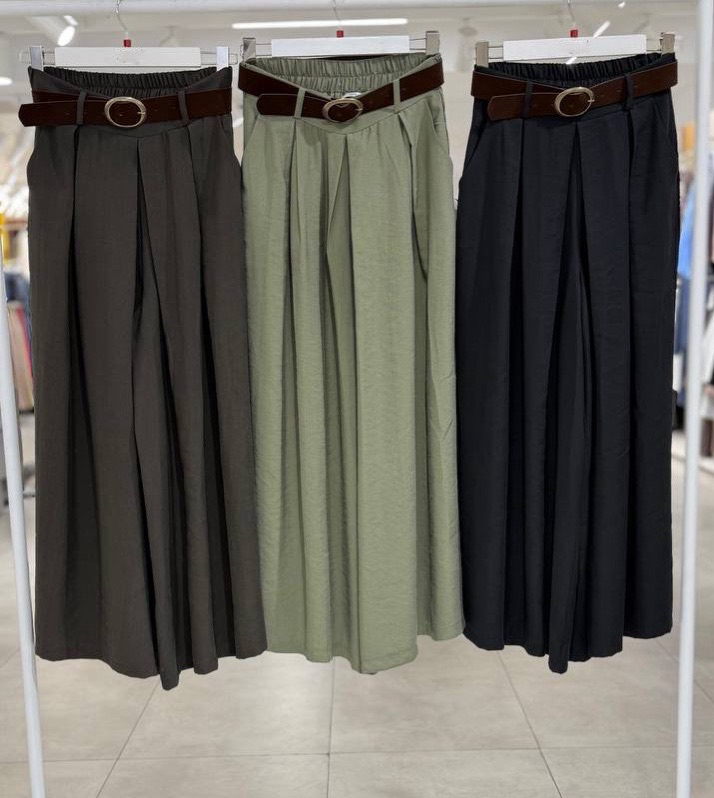Брюки палаццо с эластичным поясом сзади , косой боковой карман