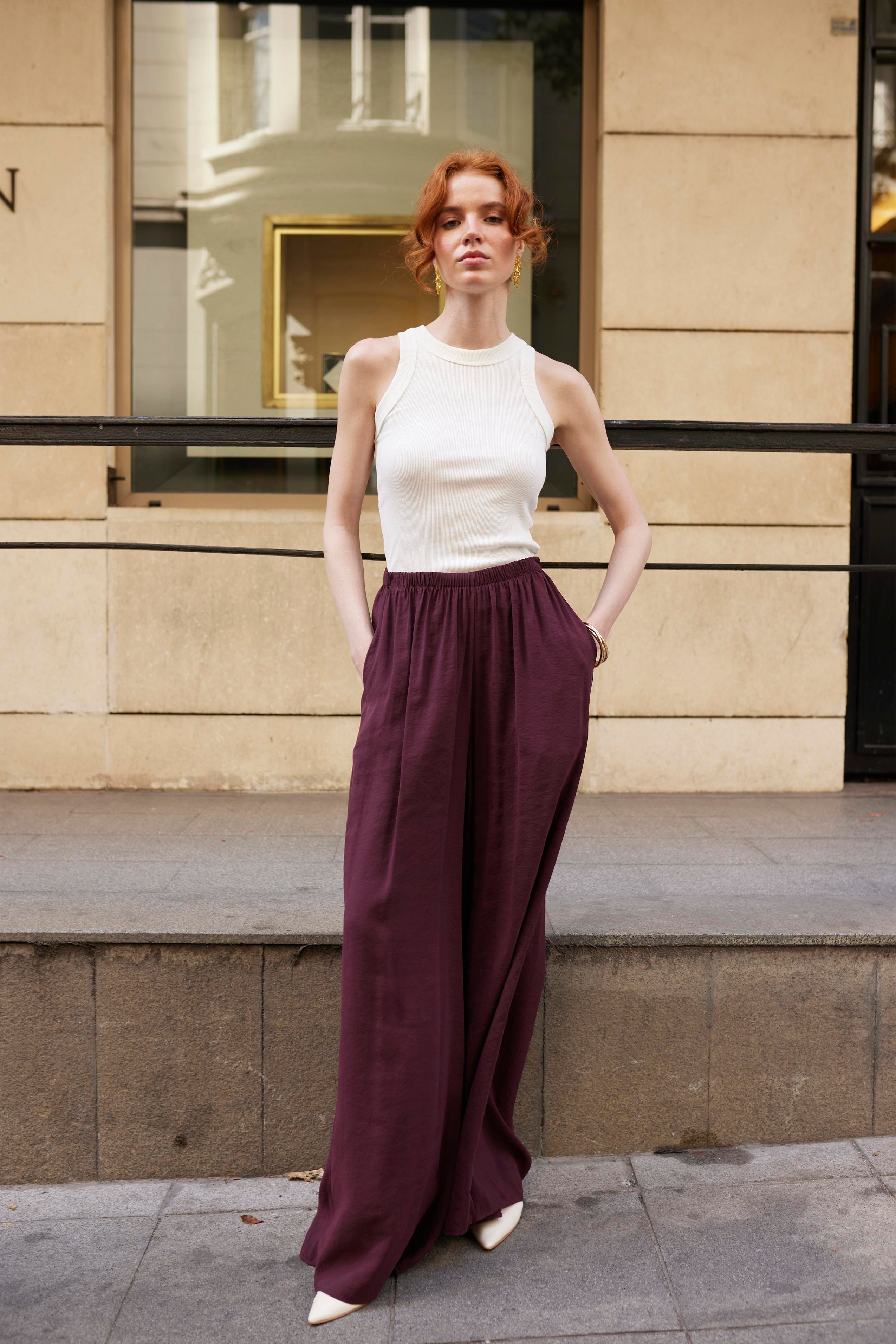 Брюки широкие из модала на тонком эластичном поясе
