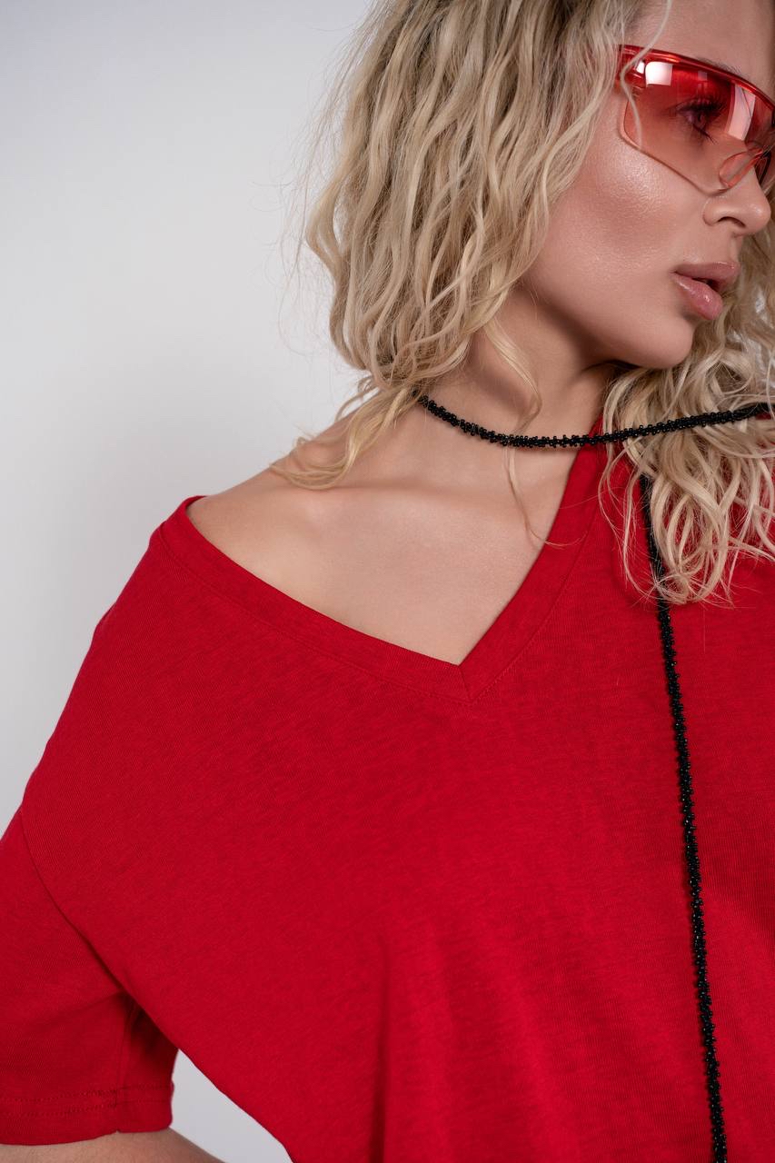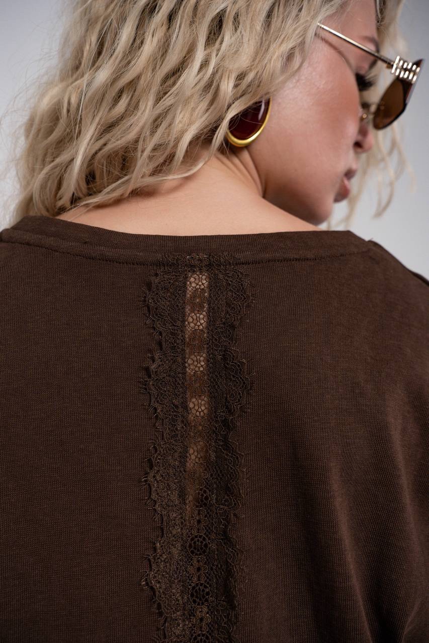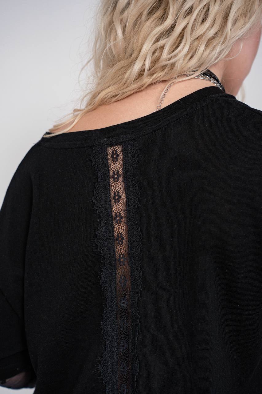 Футболка из легкой ткани с гипюровыми вставками на спине