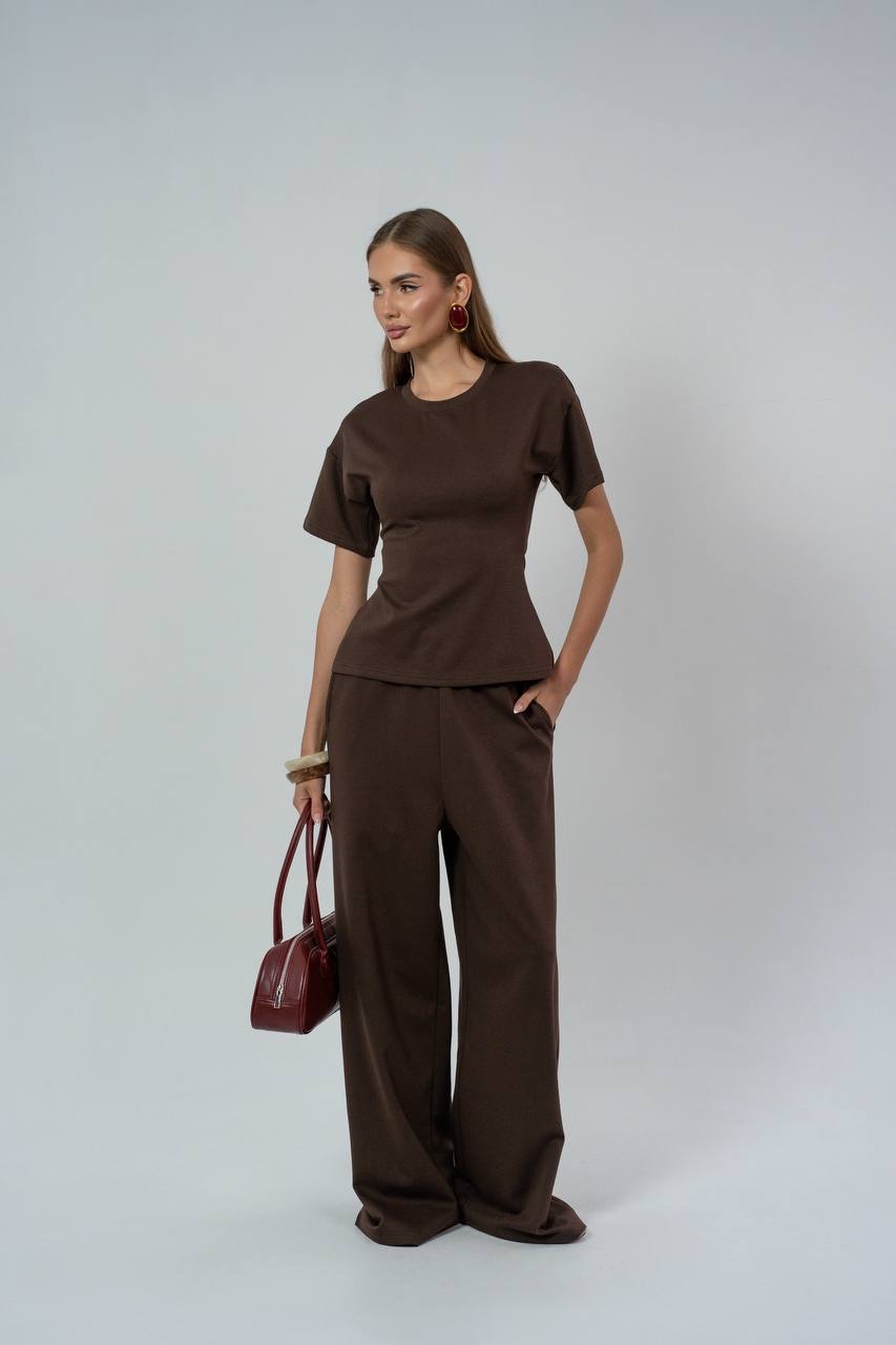 Костюм из прямых брюк на резинке и футболки X-силуэта