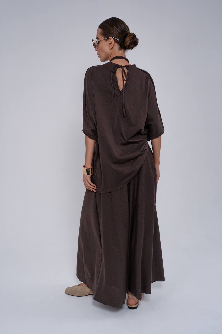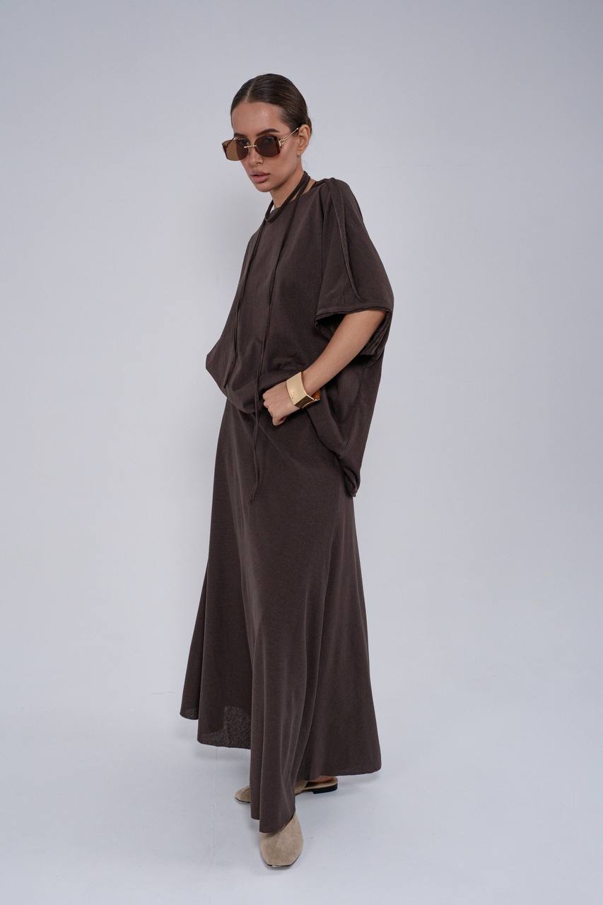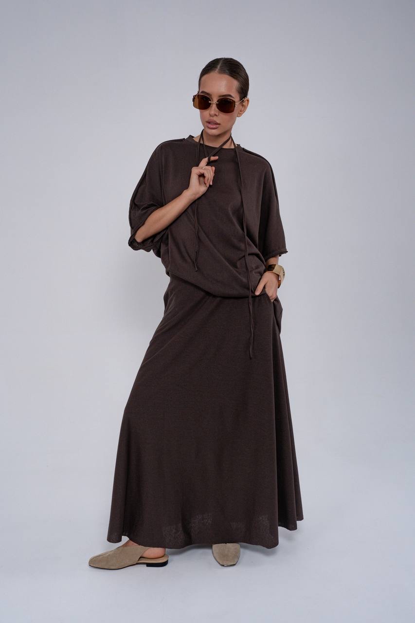 Костюм с юбкой в макси длине из тонкого трикотажа с прострочками