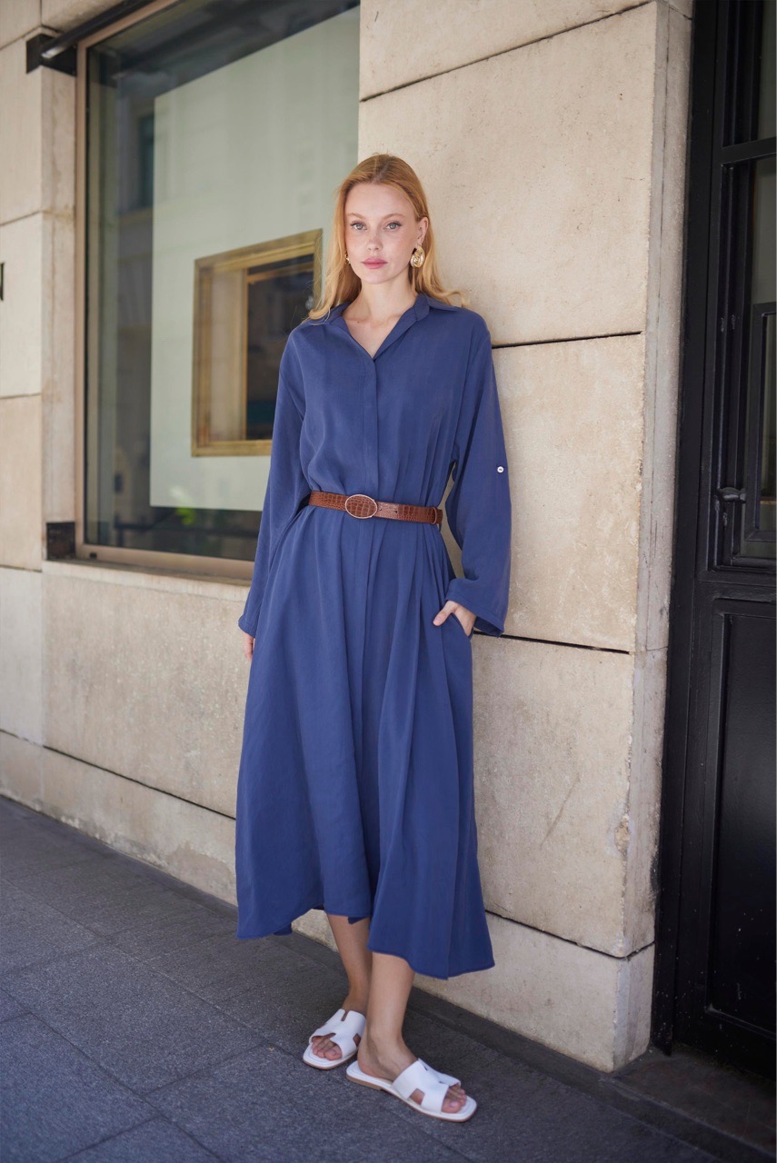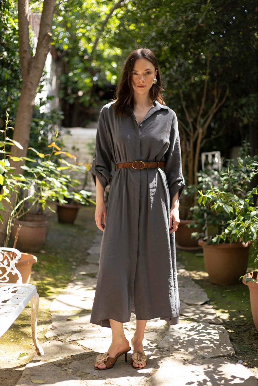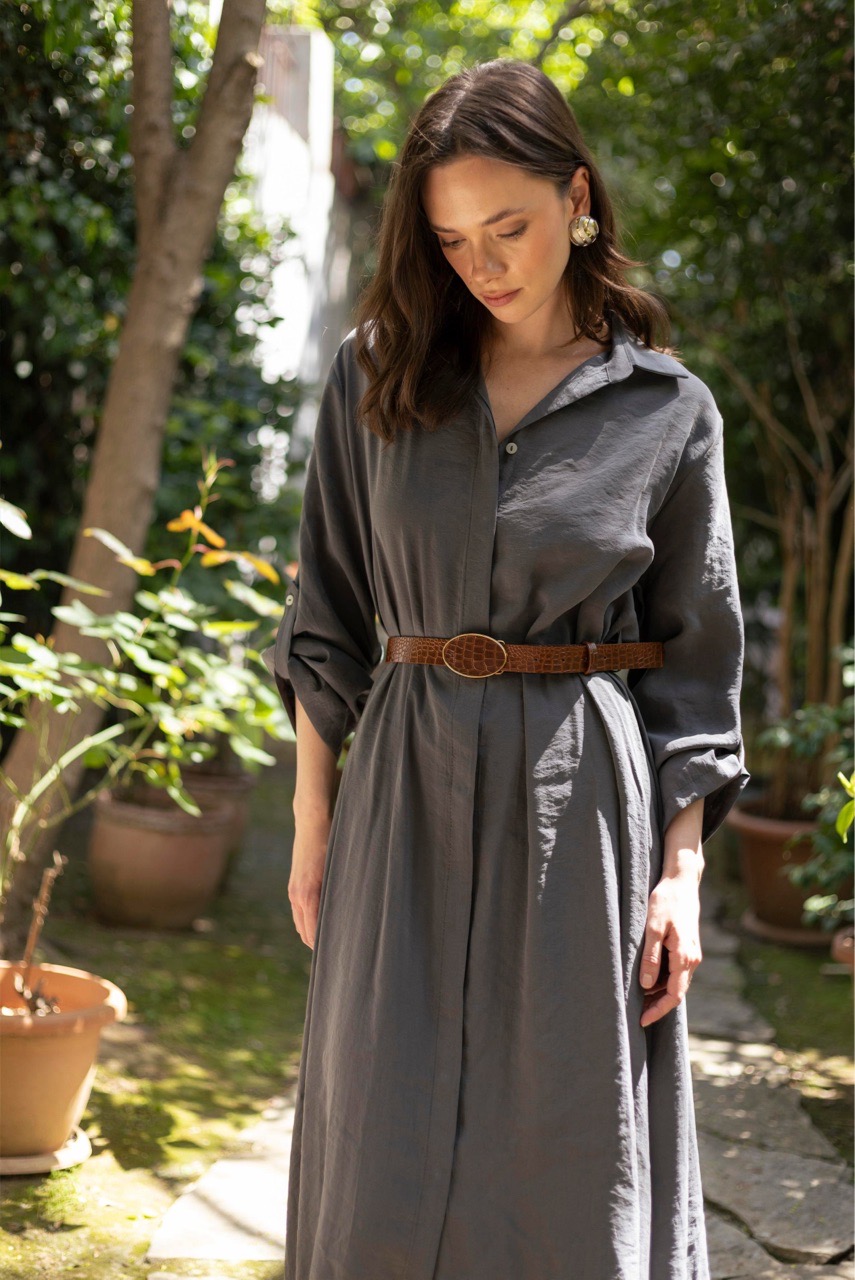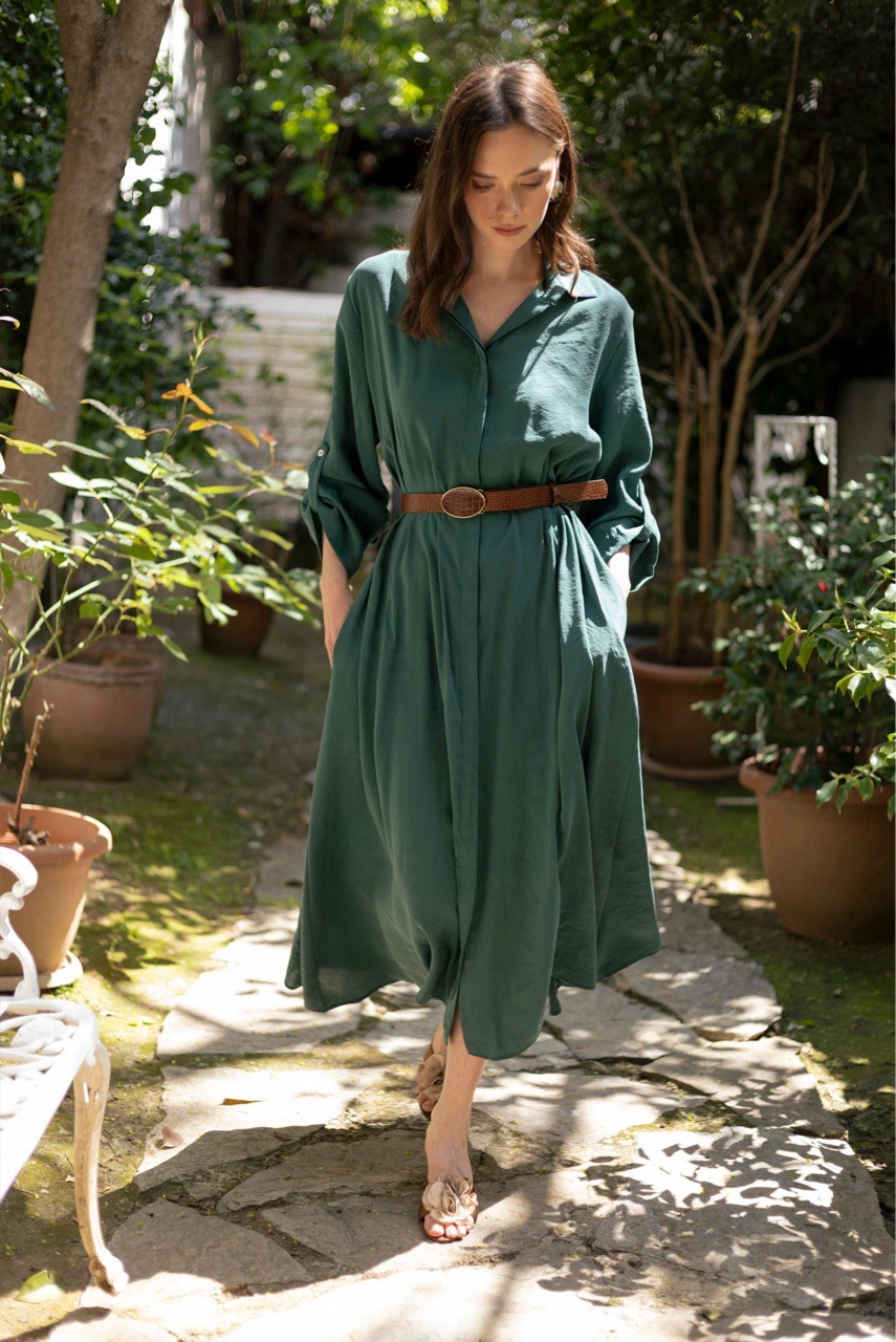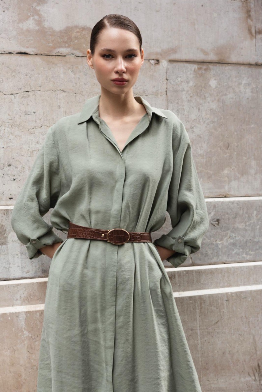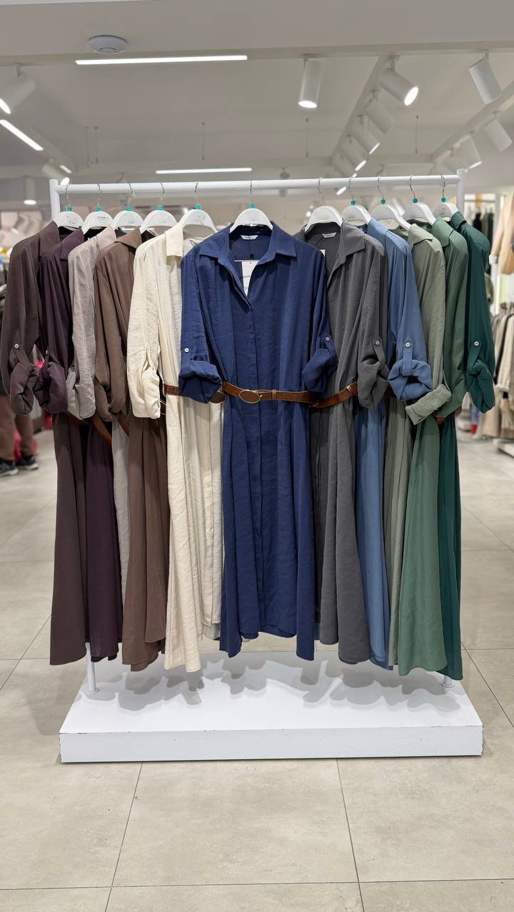 Платье -рубашка с боковыми кармана в комплекте с поясом