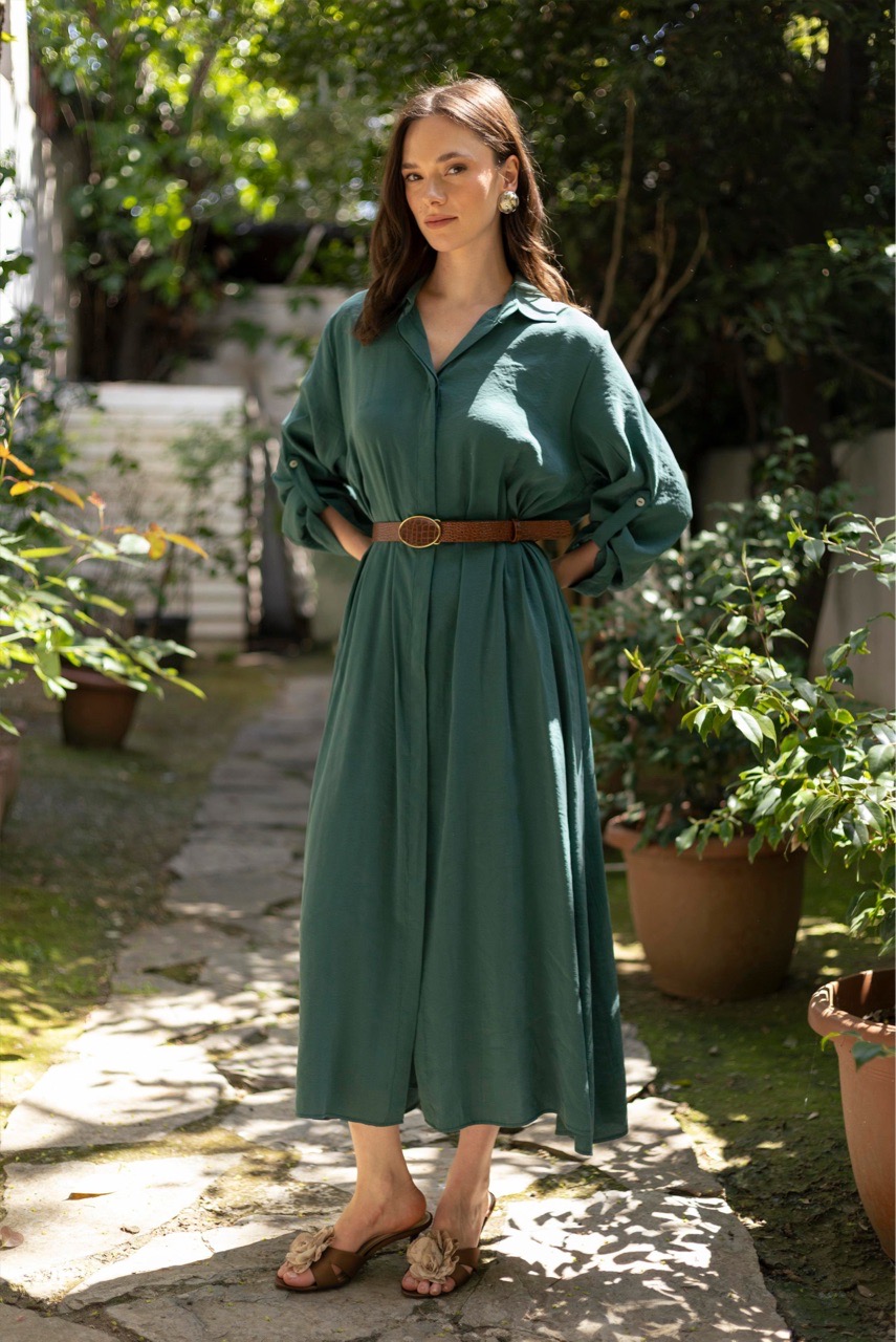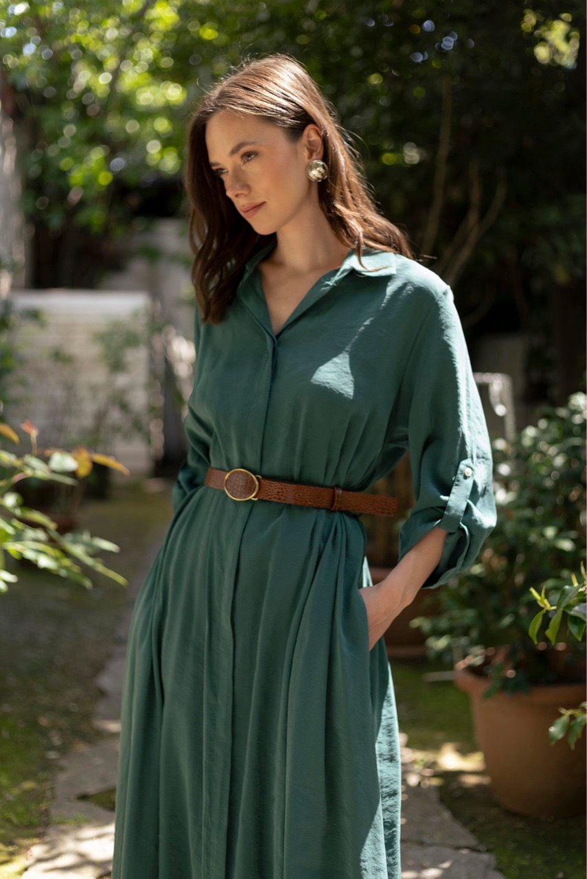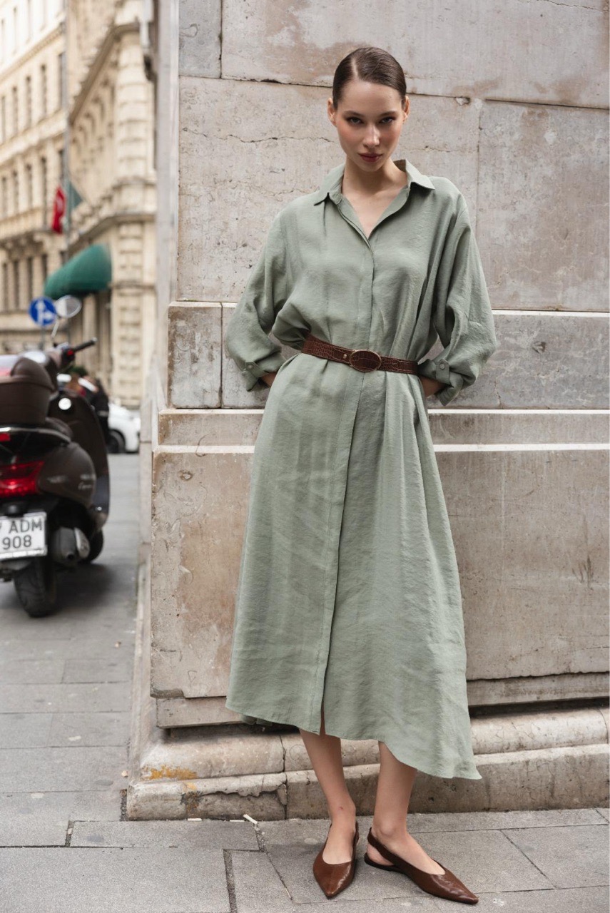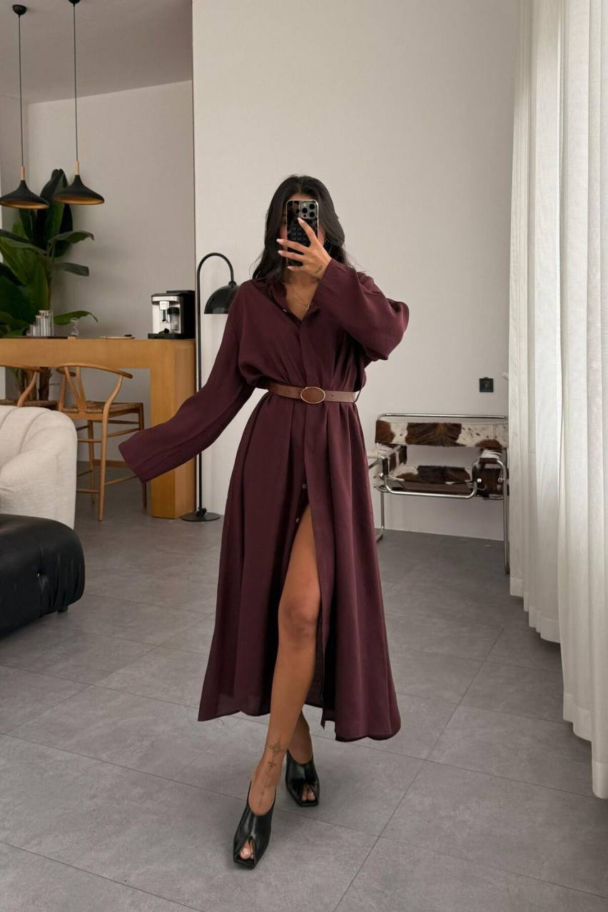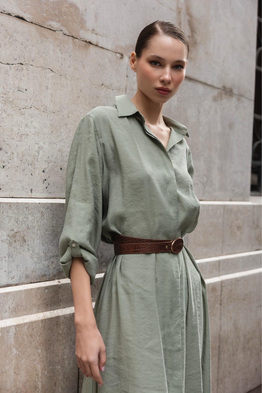 Платье -рубашка с боковыми кармана в комплекте с поясом