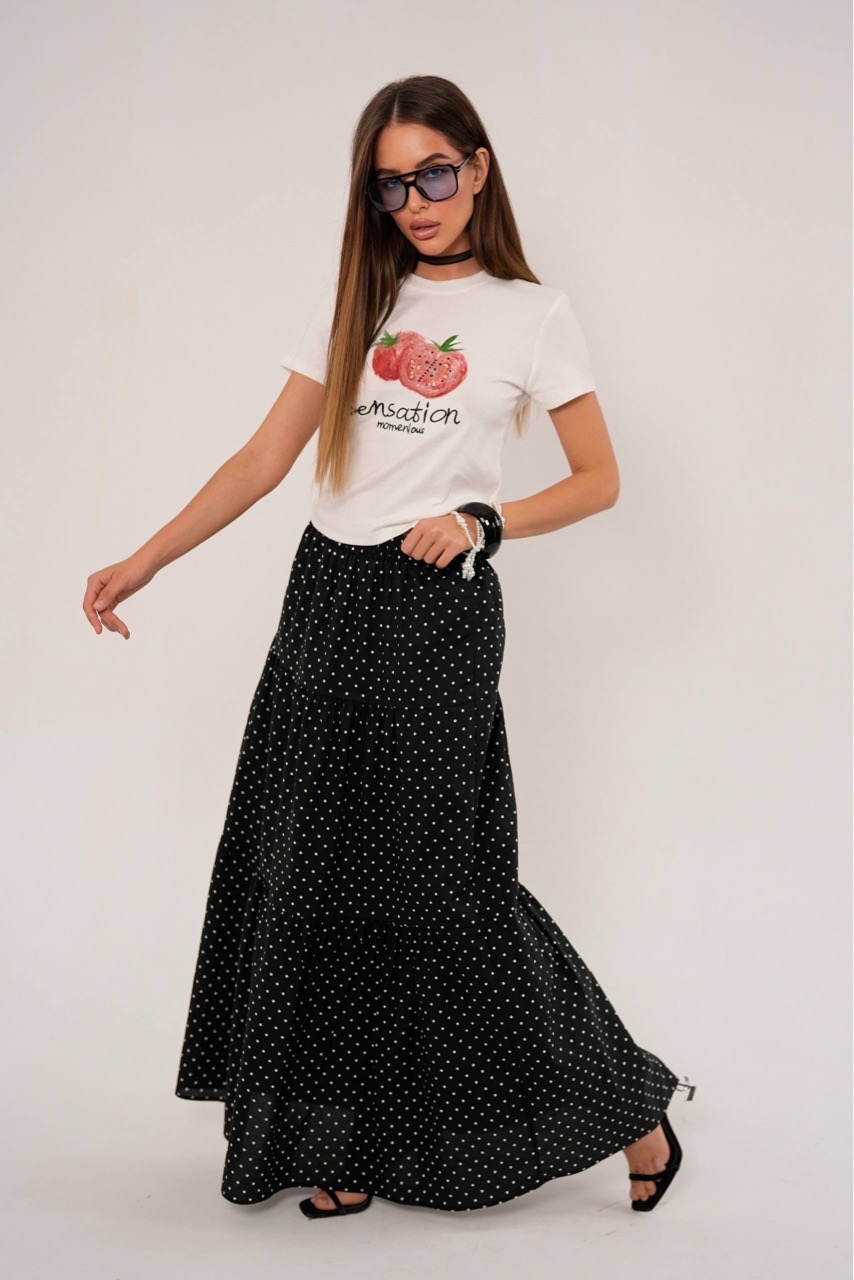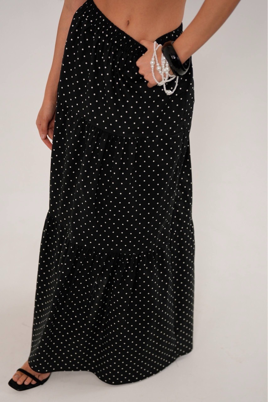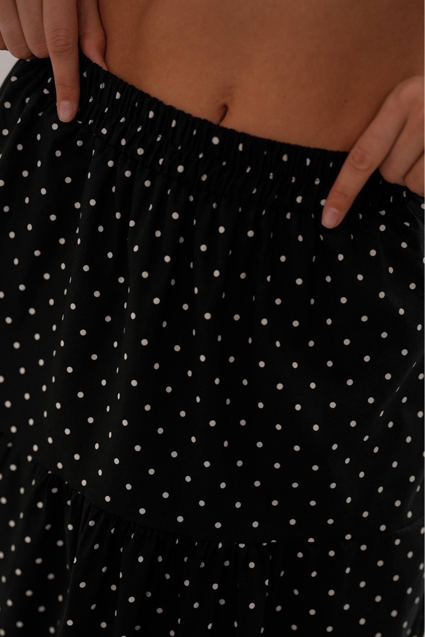 Юбка из хлопка с ярусами в горошек , в макси длине